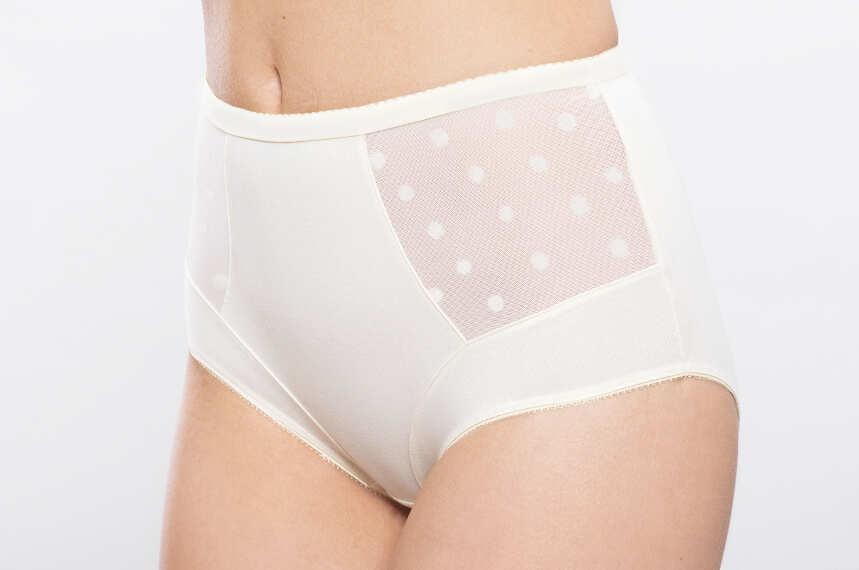 Висока посадка, виготовлені з поєднання найвищої якості бавовни з еластаном. М'які, еластичні, зручні у використанні. З обох боків пофасаду, чорні, мереживні вставки.